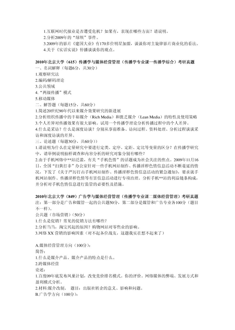 北京大学2011-2001新闻传播学考研真题(17)
