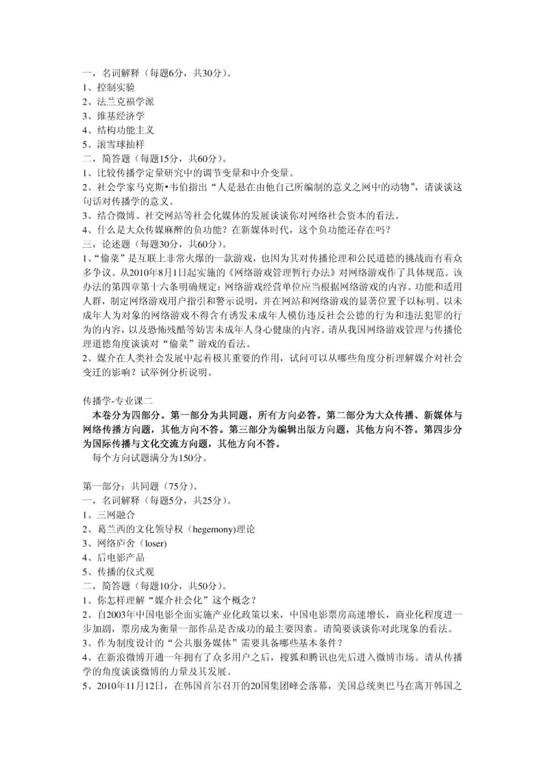 山东大学 上午334 新闻与传播综合能力 1.传播过程的特征 材料是小明和小强电子邮件讨论国学问题。你来我往的回复。 2、美国性丑闻事件,一个人用自己的邮件列表发送给了大家,赶在了传统平媒前,另一个检察官把事件全文发表在互联网上,短时间内2000万人下载。分析这件事。 3、用相关传播理论分析马诺现象rd ...