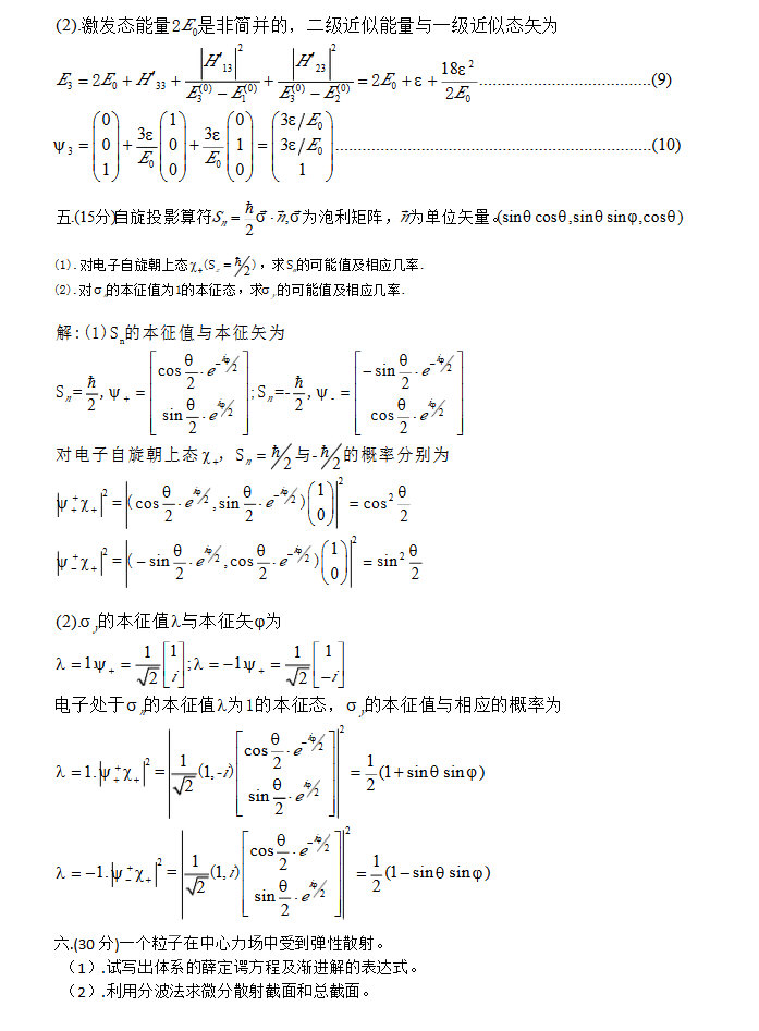 2012年四川大学原子与分子研究所量子力学考研真题带详细答案(5)