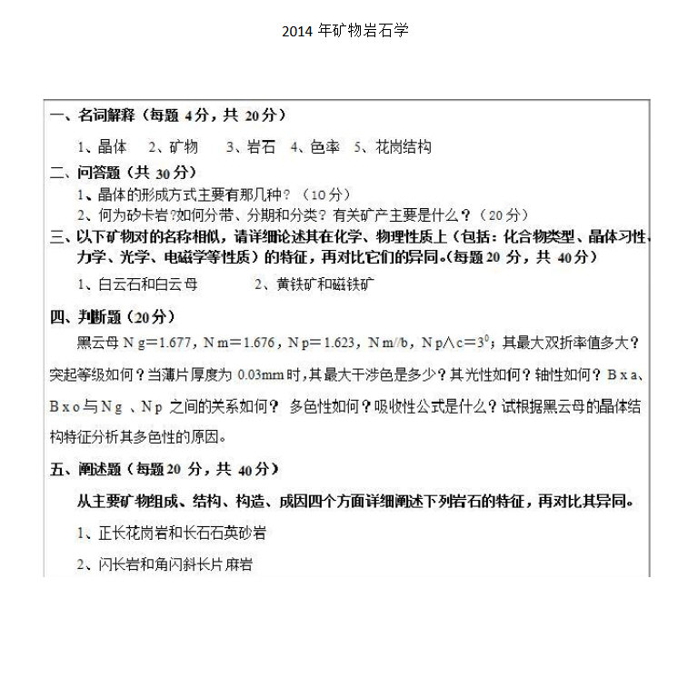 2012-2015年昆明理工大学矿物岩石学考研试题(3)
