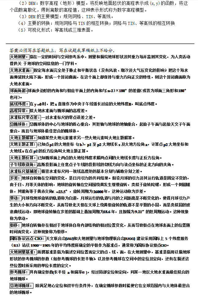 2016武汉大学大地测量学基础考研真题 一. 名词解释(每小题5分,共六小题,共30分) 重力异常 章动 高斯投影 甚长基线干涉测量 控制网的可靠性 测距仪周期误差 二. 多项选择(每小题4分,共10小题,共40分) 1. 以下说法正确的是() A 地轴的方向在空间的指向是变化的 B 地轴在地球内部存在相对位移 C ...