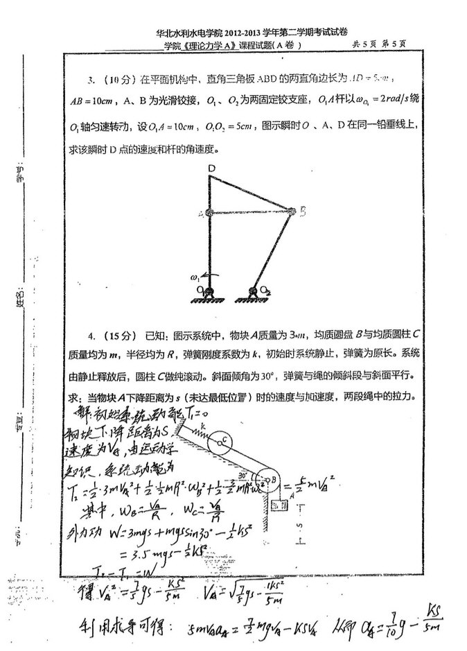 2012-2013华北水利水电大学理论力学期末考试试卷(5)