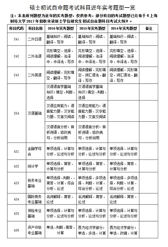 上海财经大学硕士初试自命题考试科目近年实考题型一览