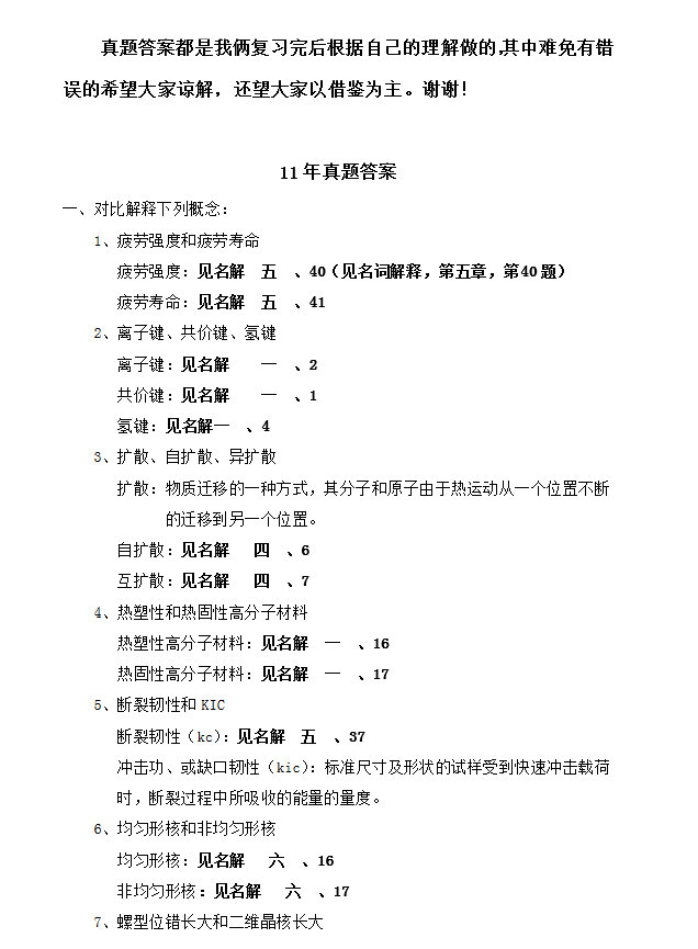 专业课考研资料 本站小编 免费考研网 2016-09-262013年西北工业大学大学材料科学基础考研真题回忆版