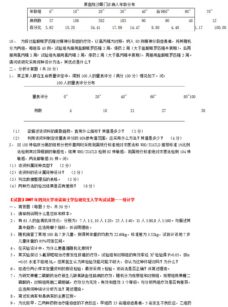四川大学华西公共卫生学院考研历年统计真题整理(10)