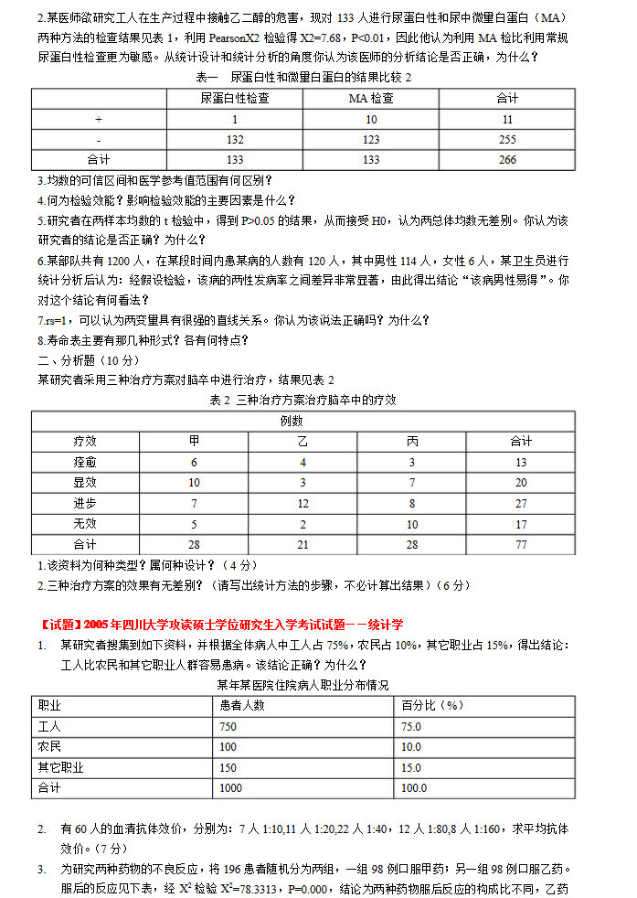 四川大学华西公共卫生学院考研历年统计真题整理(12)