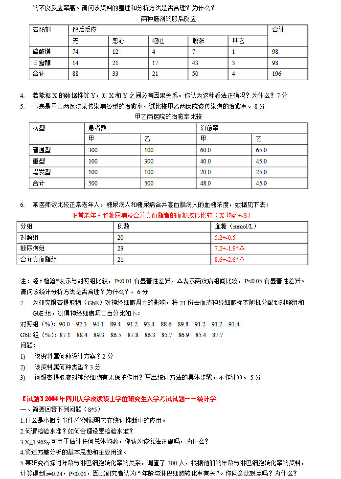 四川大学华西公共卫生学院考研历年统计真题整理(13)