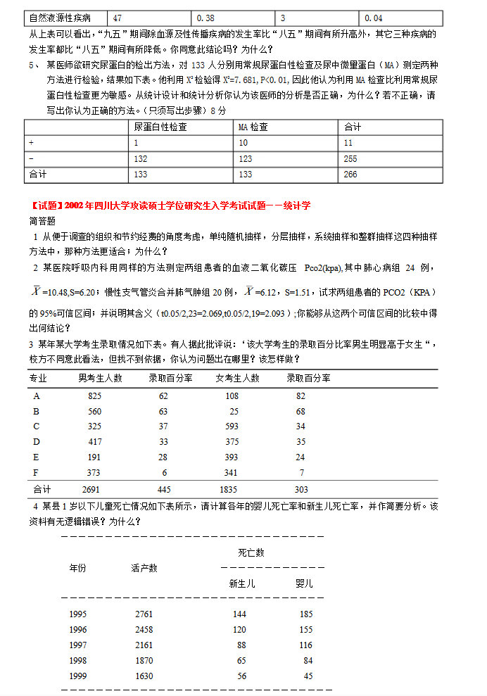 四川大学华西公共卫生学院考研历年统计真题整理(15)