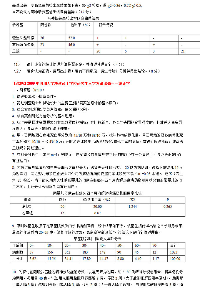 四川大学华西公共卫生学院考研历年统计真题整理(8)