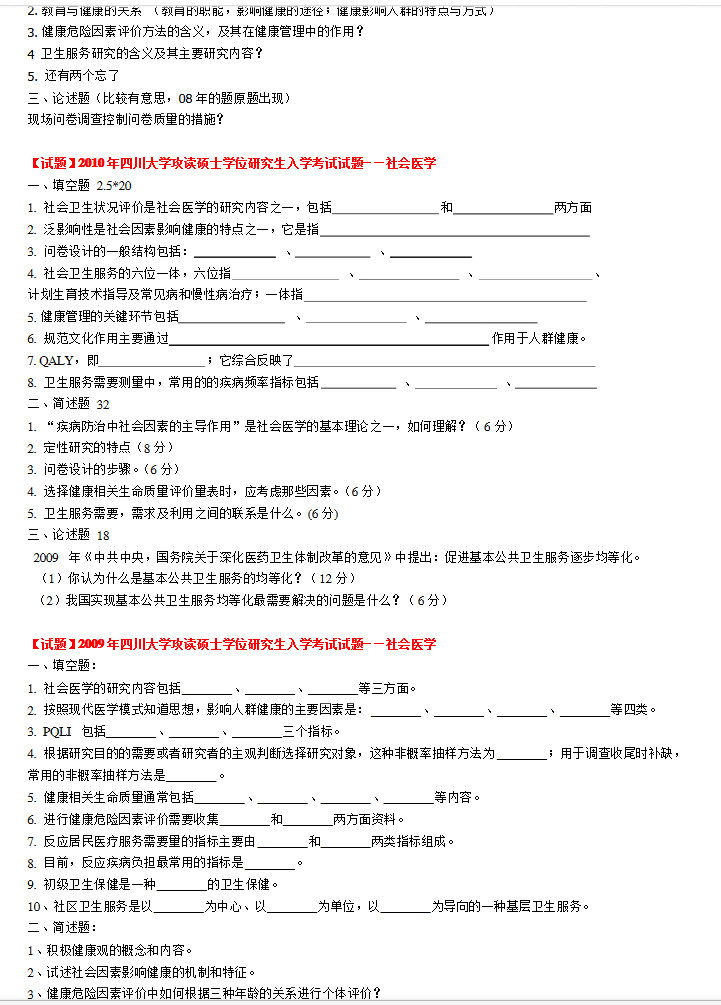 四川大学华西公共卫生学院考研历年社会医学真题整理(2)