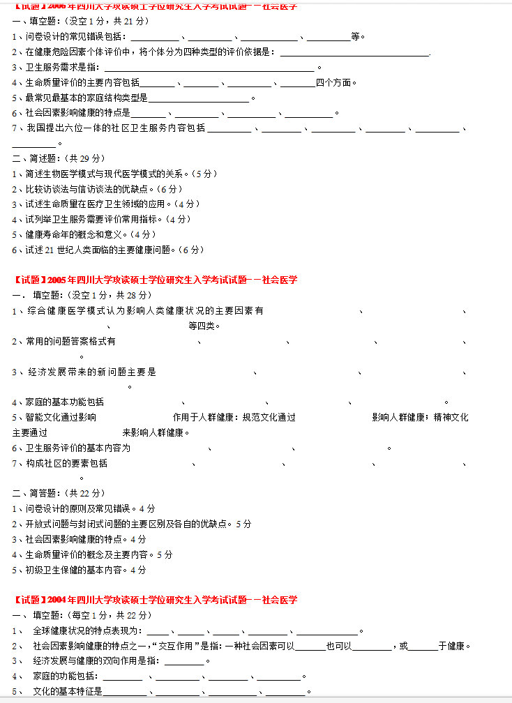 四川大学华西公共卫生学院考研历年社会医学真题整理(4)