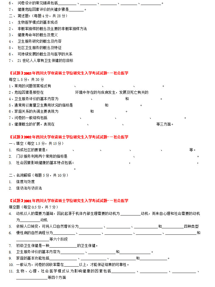 四川大学华西公共卫生学院考研历年社会医学真题整理(5)