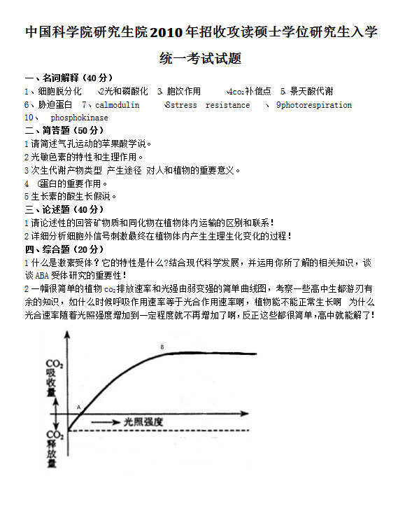中国科学院848植物生理学历年真题(2007-2013)和复习建议(4)