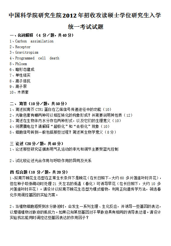 中国科学院848植物生理学历年真题(2007-2013)和复习建议(6)