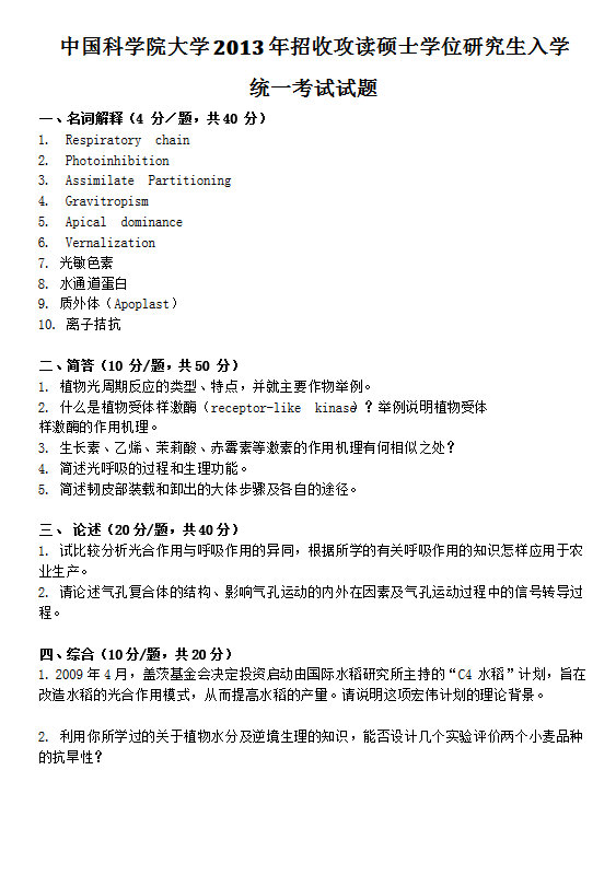 中国科学院848植物生理学历年真题(2007-2013)和复习建议(7)