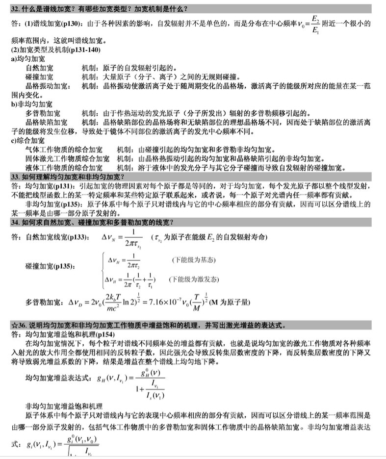 2015华中科技大学光学工程激光原理900真题回忆 一、简答题 1、△n 大于0,激光器是否能够产生自激振荡? 2、光学谐振腔的结构和作用 3、共焦腔与一般腔的等价性 4、均匀加宽与非均匀加宽的特点 5、连续激光器从开始振荡到产生稳定输出增益系数的变化情况 6、光学模式以及横模和纵模 二、三能级四能级的本质区别,以及 ...专业课考研资料 本站小编 免费考研网 2015-12-17内蒙古大学激光原理与技术课后题
