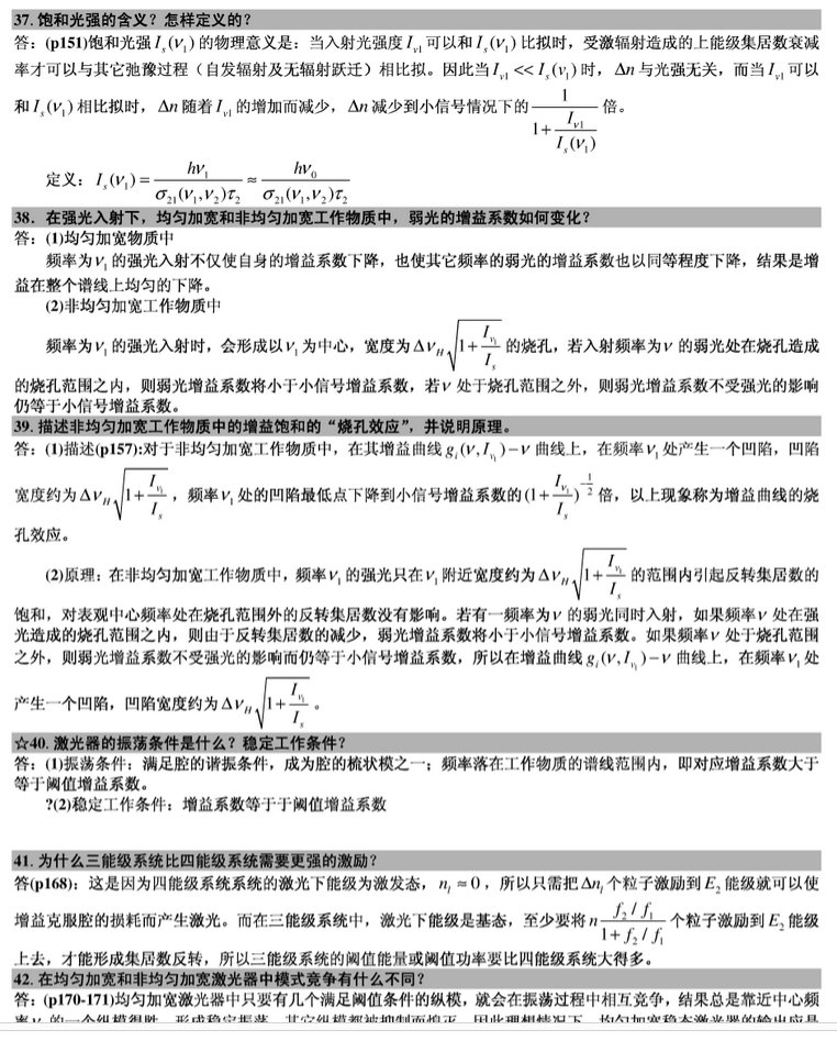 2015华中科技大学光学工程激光原理900真题回忆 一、简答题 1、△n 大于0,激光器是否能够产生自激振荡? 2、光学谐振腔的结构和作用 3、共焦腔与一般腔的等价性 4、均匀加宽与非均匀加宽的特点 5、连续激光器从开始振荡到产生稳定输出增益系数的变化情况 6、光学模式以及横模和纵模 二、三能级四能级的本质区别,以及 ...专业课考研资料 本站小编 免费考研网 2015-12-17内蒙古大学激光原理与技术课后题