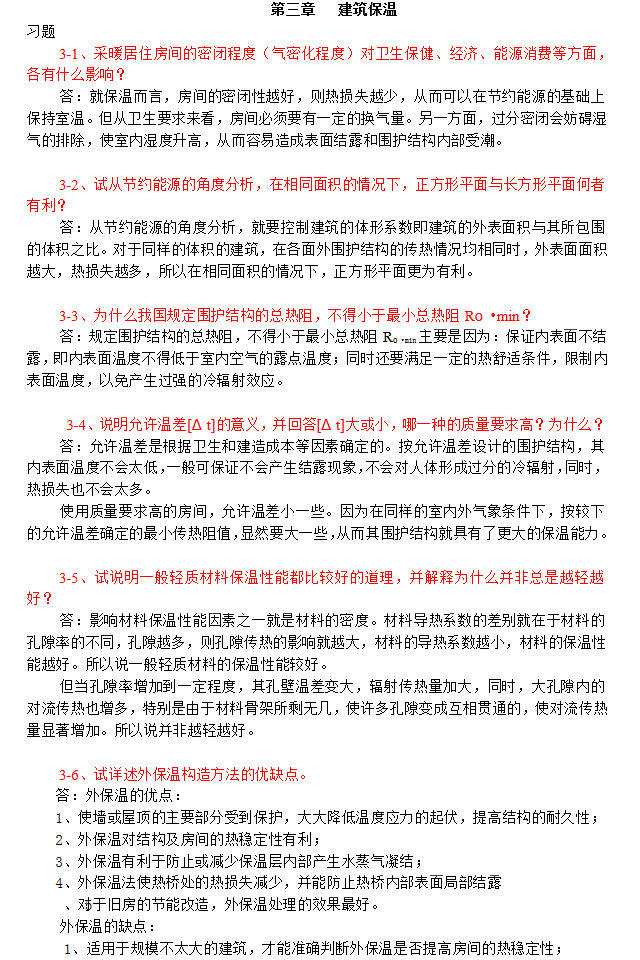 专业课考研资料 本站小编 福瑞考研网 2016-11-25建筑物理 第三版(柳孝图)中国建筑工业出版社 课后习题答案 1.1章