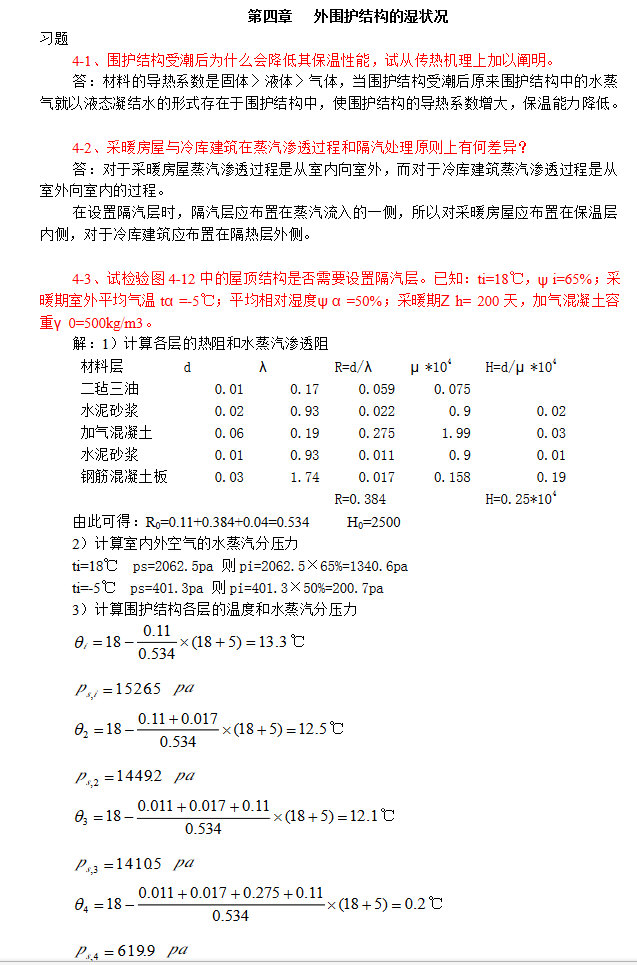 专业课考研资料 本站小编 福瑞考研网 2016-11-25建筑物理 第三版(柳孝图)中国建筑工业出版社 课后习题答案 2.3章