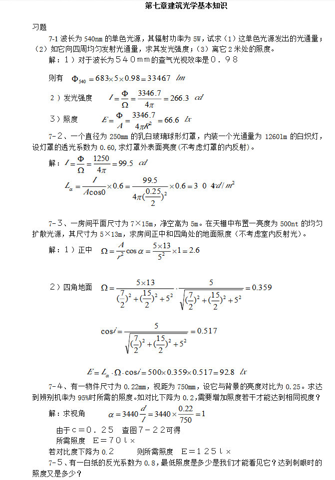 建筑物理(第四版)刘加平课后习题答案第7章