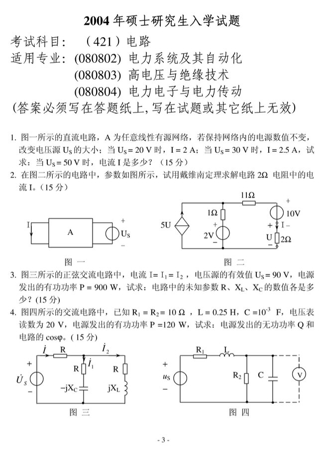 东北电力大学2003-2006电路考研真题(3)