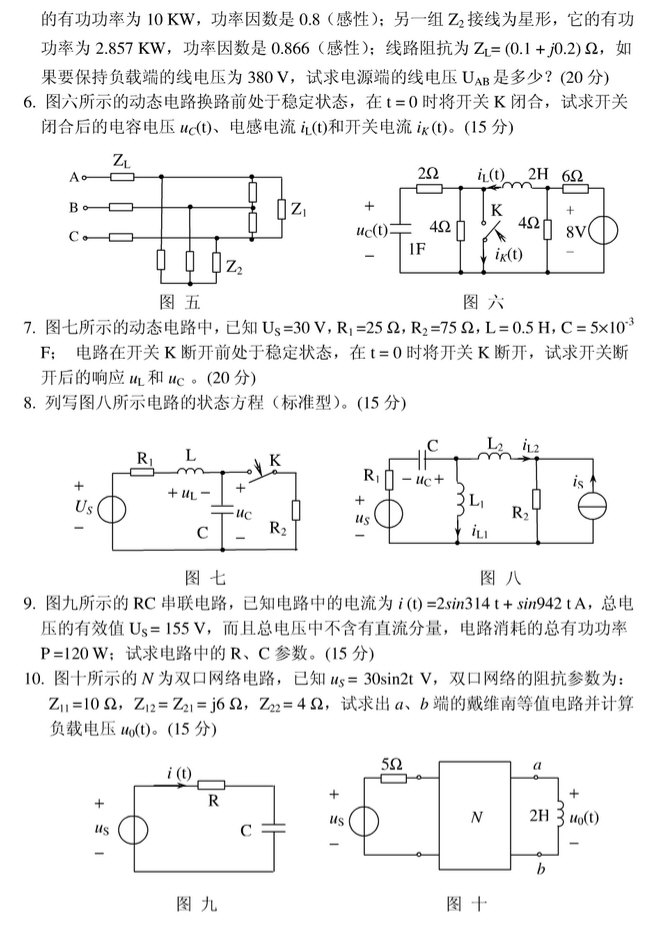 东北电力大学2003-2006电路考研真题(6)