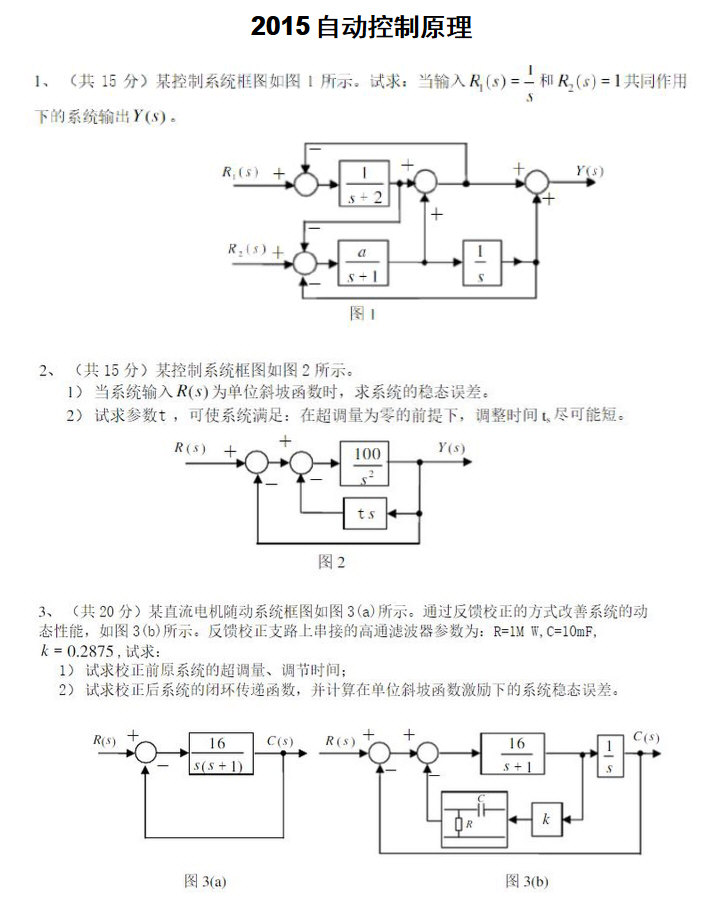 一:关于液位控制的,有浮子,阀门,电动机,减速器,让画出结构图,再分析是什么类型的系统。。。。貌似经常见得题目。