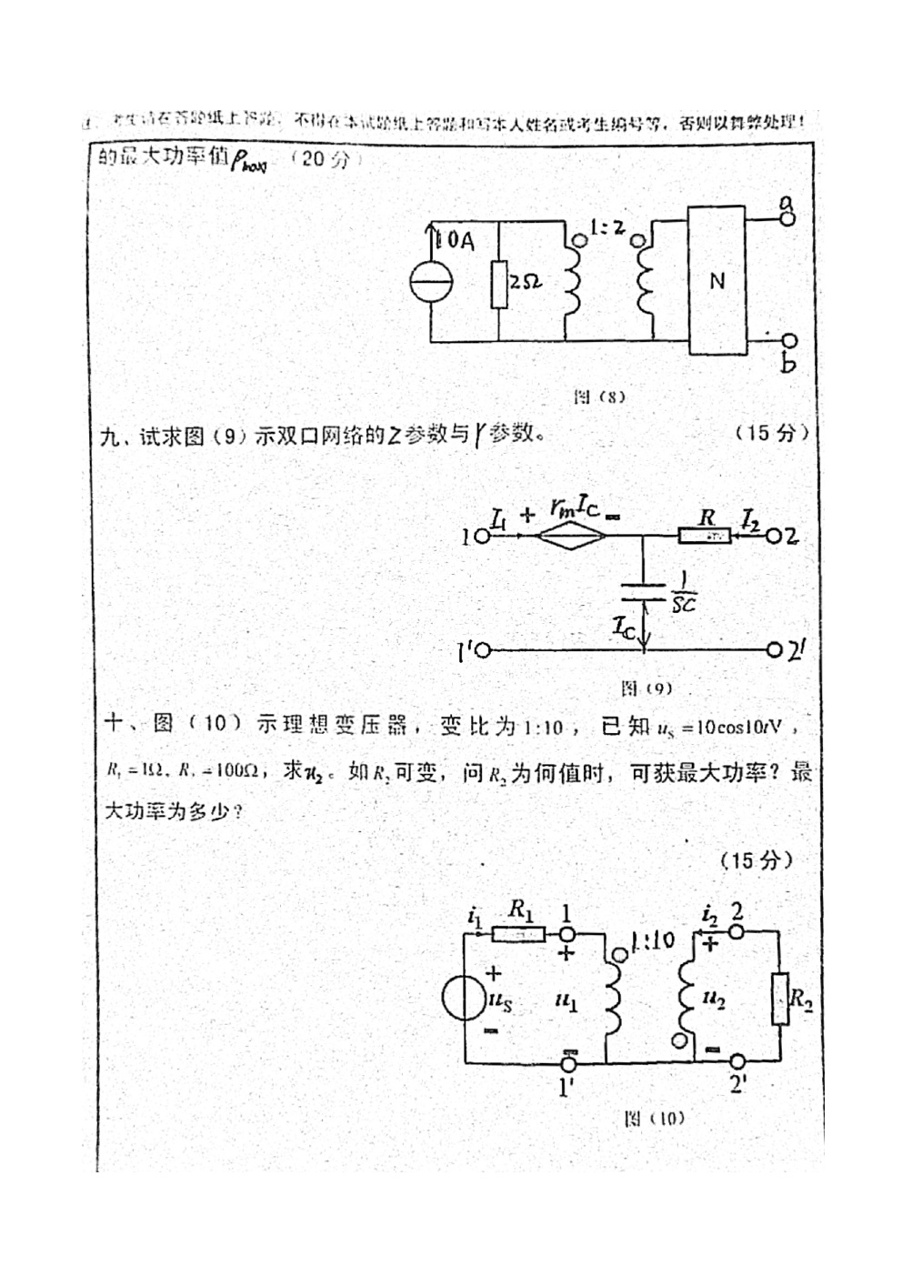 南昌大学2006-2010电气电路810考研真题(12)