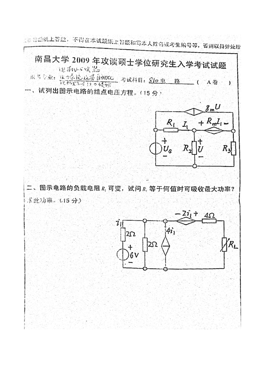 专业课考研资料 本站小编 福瑞考研网 2016-12-04西华大学2013年2014年电路原理(822或者819)考研原题