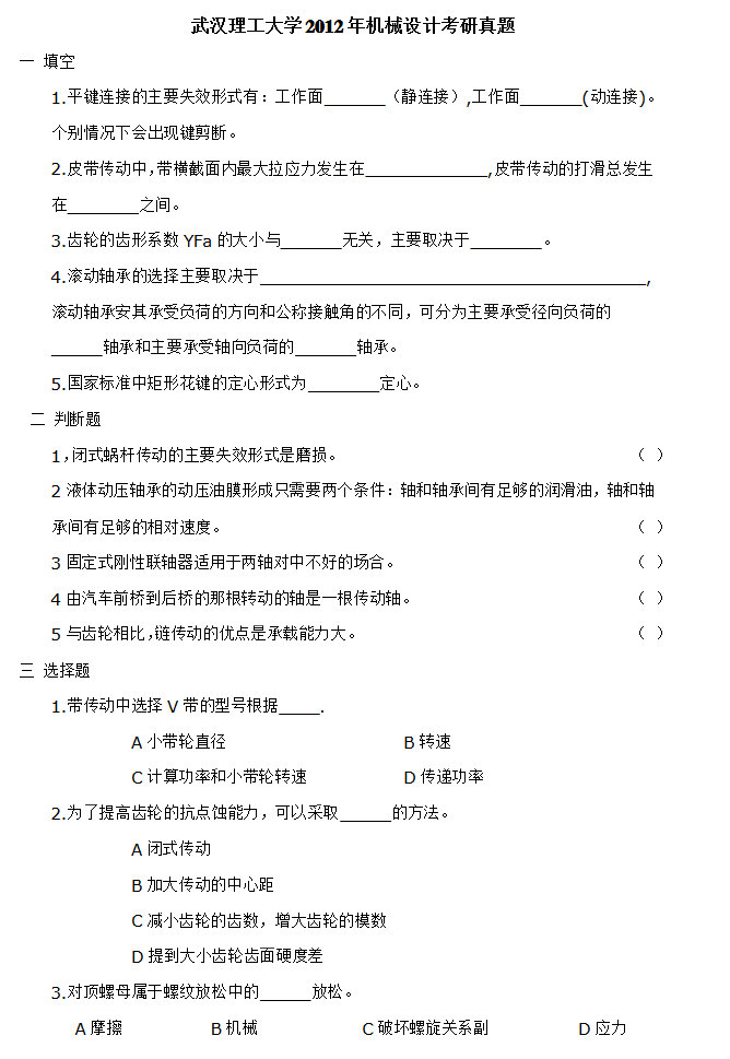 2013机电工程学院复试题(笔试+面试)