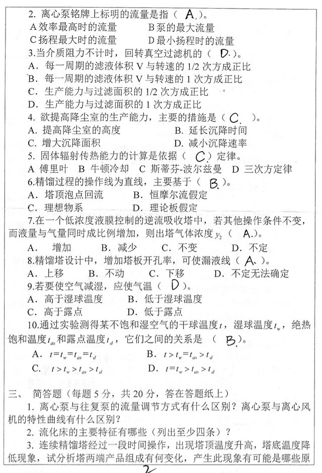西北大学2012化工原理考研真题(2)