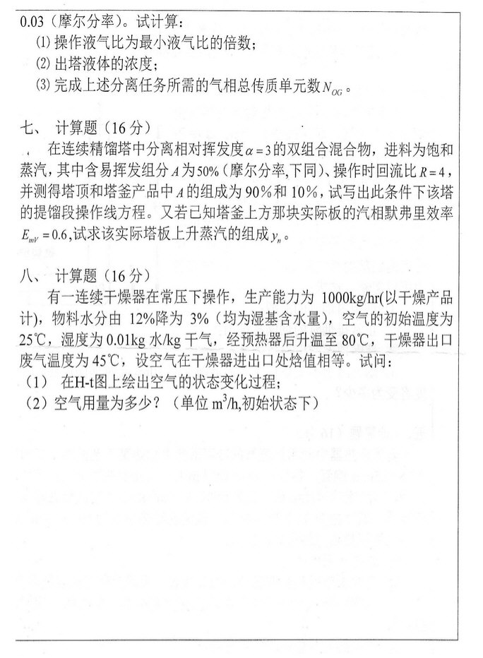 专业课考研资料 本站小编 免费考研网 2016-08-29华东理工大学2010年化工原理部分考研真题