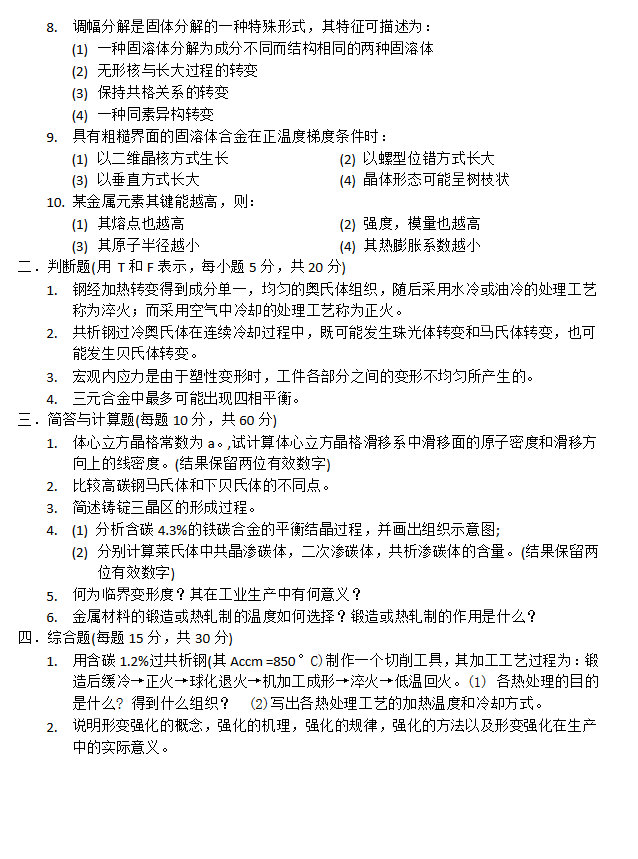 f:金属的塑性变形理论及冷变形金属加热时的组织性能变化 (前六章,去掉6.7节 超塑性) 2)热处理原理及工艺 a:钢的加热相变理论 b:钢的冷 ...