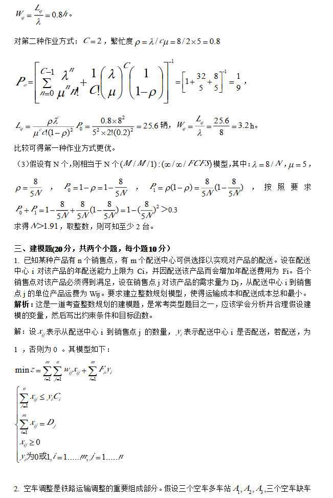 西南交通大学2014年961管理运筹学二考研真题答案解析(10)