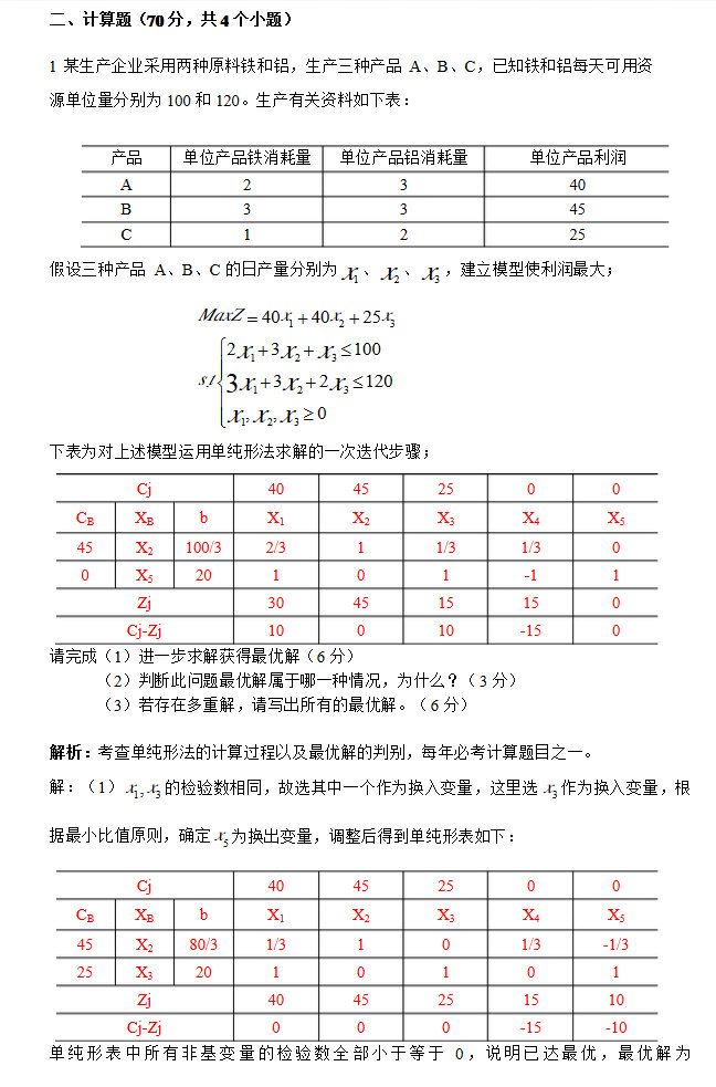 2015年北京交通大学管理运筹学考研真题 一单纯形法求解,并且利用灵敏度分析计算,共计35分。 二运输问题,先列运输模型,再化为对偶问题的模型,之后再求解,还有一个小题是改了某个运价,问是否影响结果?可能是20分 三指派问题,非标准型的,大概是由四个任务,三个人,有两个人可以分别完成两个任务,第一题是化为标 ...专业课考研资料 本站小编 网络资源 2015-07-13北理工管理运筹学考研全年复习计划