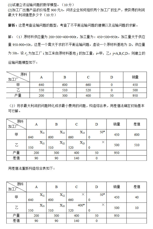 2015年北京交通大学管理运筹学考研真题 一单纯形法求解,并且利用灵敏度分析计算,共计35分。 二运输问题,先列运输模型,再化为对偶问题的模型,之后再求解,还有一个小题是改了某个运价,问是否影响结果?可能是20分 三指派问题,非标准型的,大概是由四个任务,三个人,有两个人可以分别完成两个任务,第一题是化为标 ...专业课考研资料 本站小编 网络资源 2015-07-13北理工管理运筹学考研全年复习计划