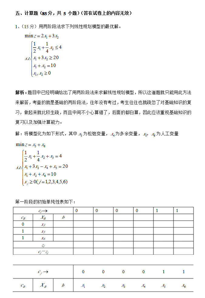专业课考研资料 本站小编 福瑞考研网 2016-12-28西南交通大学2015年929管理运筹学一考研真题答案解析