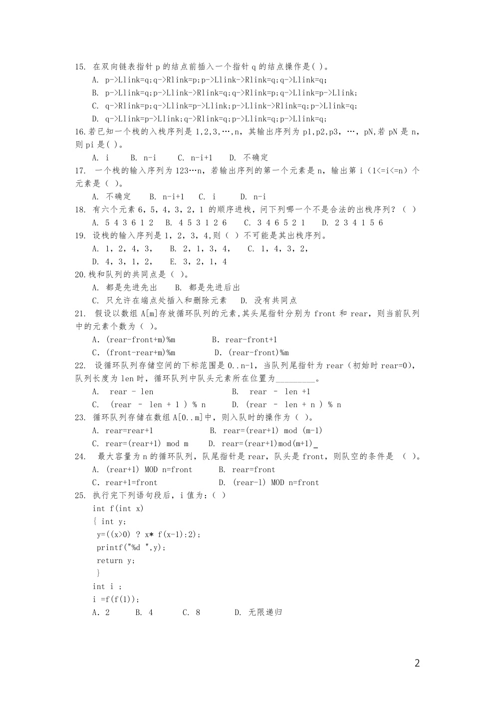 ...计算机考研资料 本站小编 福瑞考研网 2016-12-15计算机考研数据结构试卷二(练习题含答案)