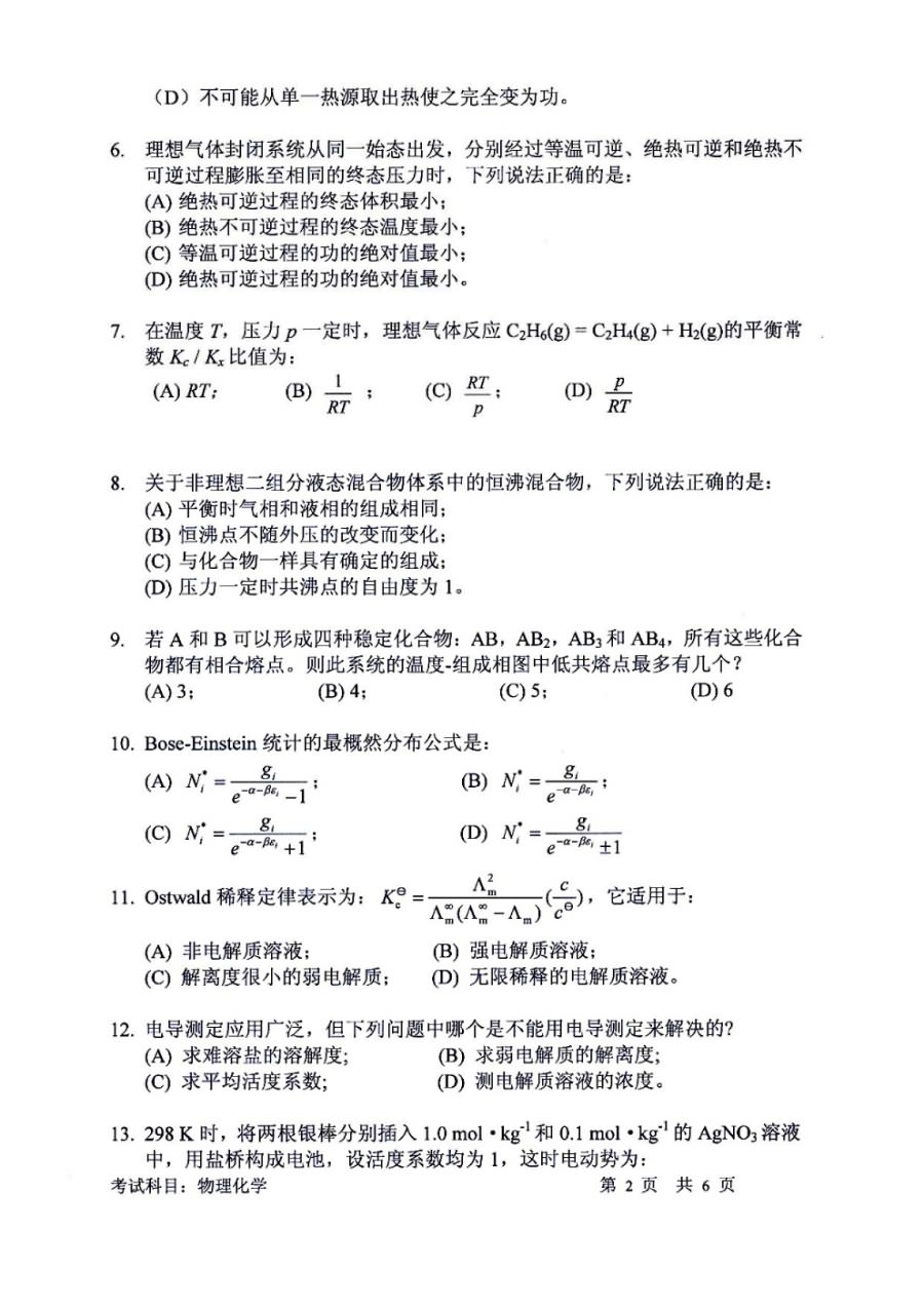 中国科学技术大学2010-2016年物理化学考研真题试题及参考答案与解析(13)