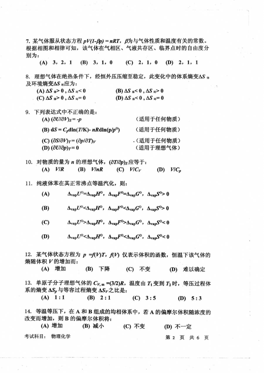 中国科学技术大学2010-2016年物理化学考研真题试题及参考答案与解析(2)
