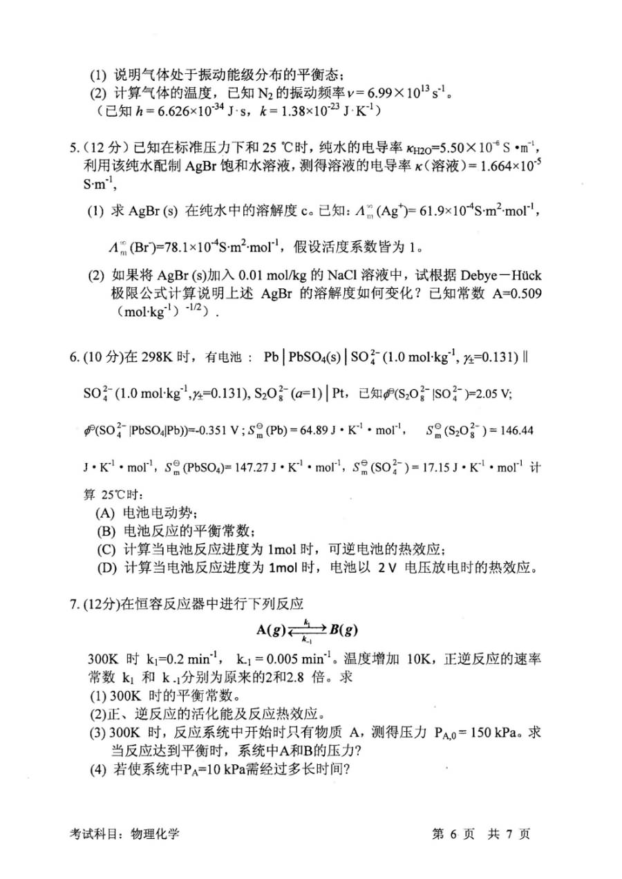 中国科学技术大学2010-2016年物理化学考研真题试题及参考答案与解析(30)
