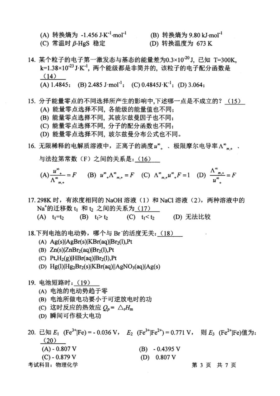 中国科学技术大学2010-2016年物理化学考研真题试题及参考答案与解析(34)