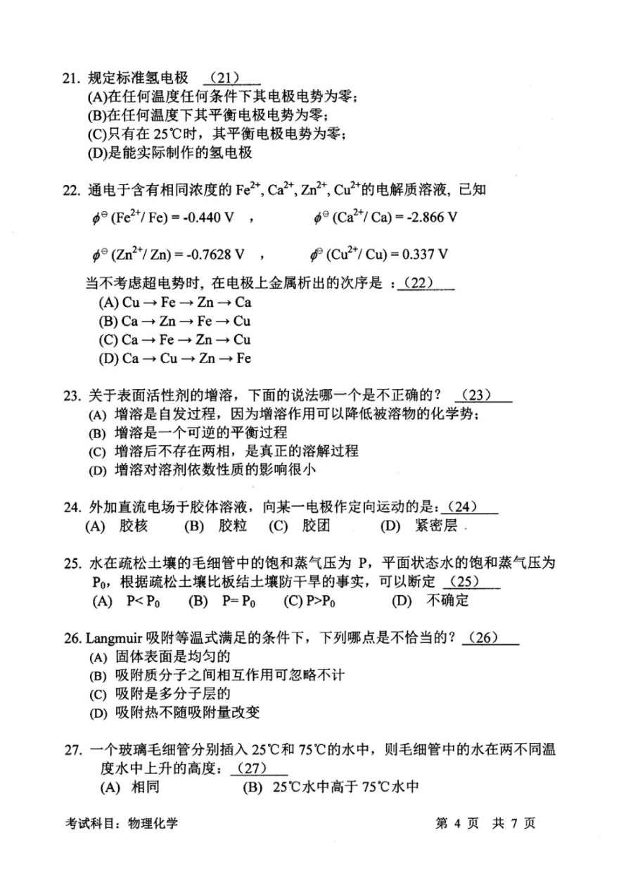中国科学技术大学2010-2016年物理化学考研真题试题及参考答案与解析(35)