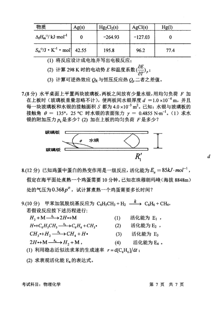中国科学技术大学2010-2016年物理化学考研真题试题及参考答案与解析(38)