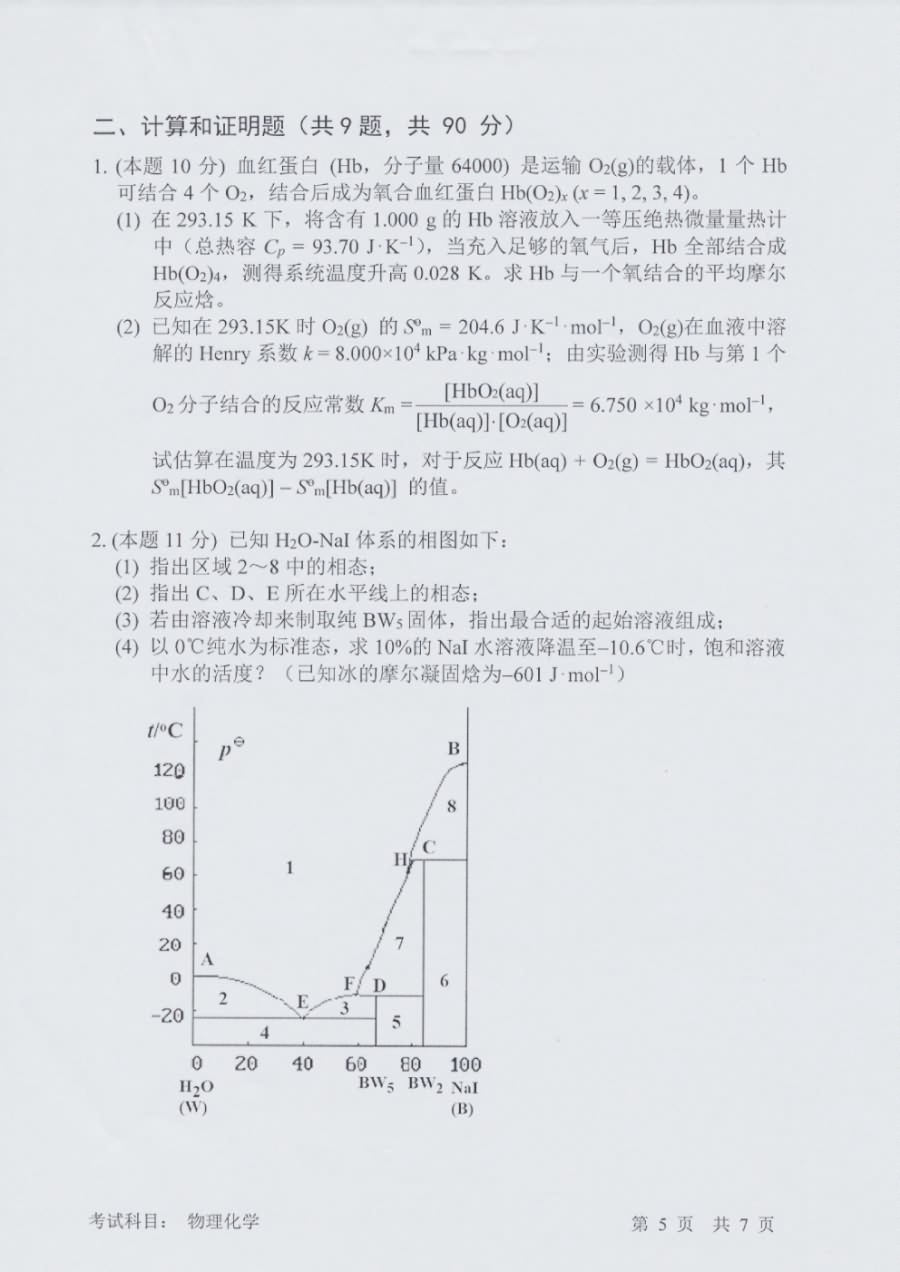 中国科学技术大学2010-2016年物理化学考研真题试题及参考答案与解析(43)
