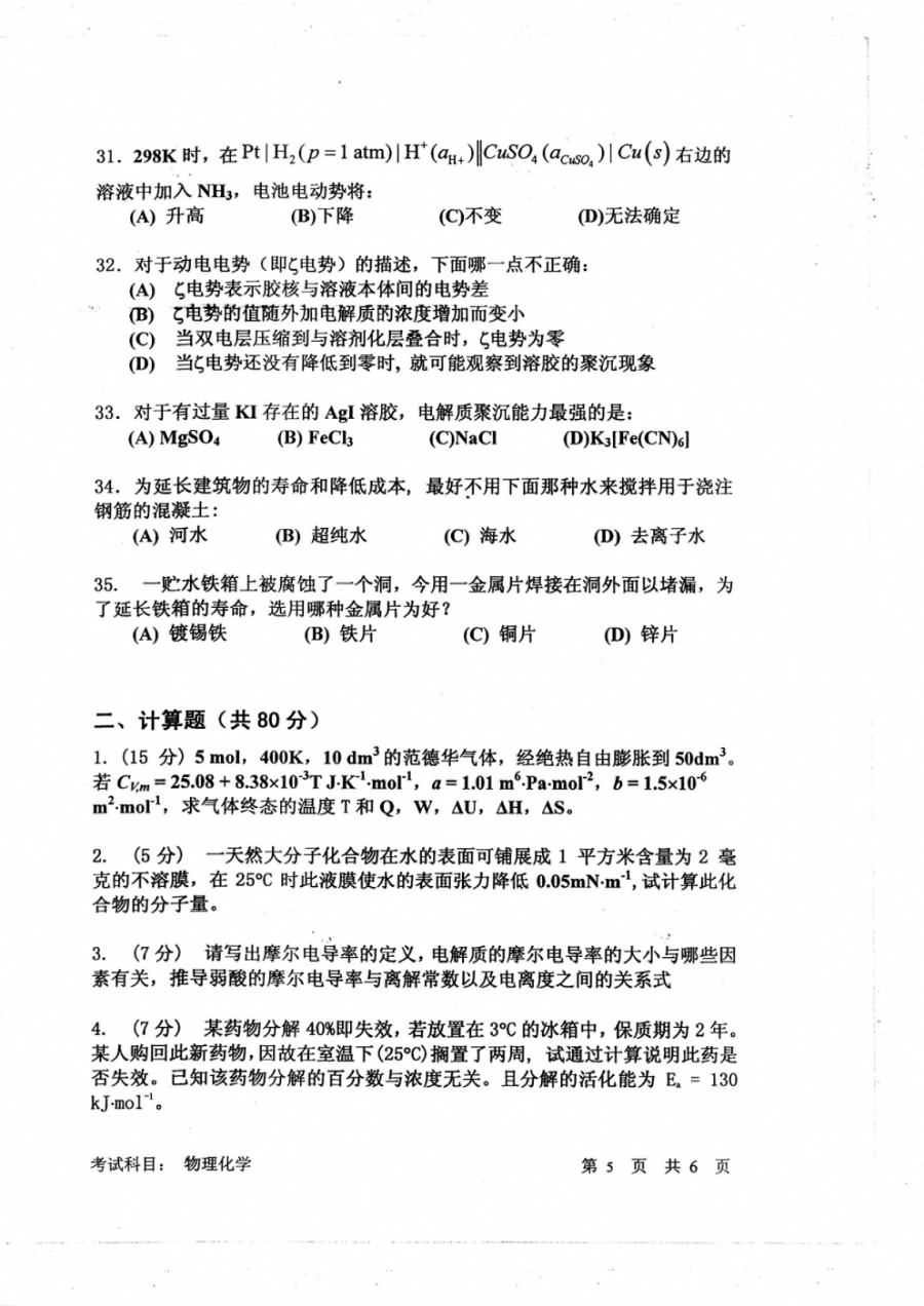 中国科学技术大学2010-2016年物理化学考研真题试题及参考答案与解析(5)