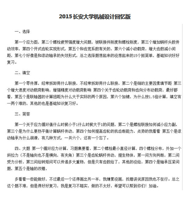 2011-2016长安大学机械设计考研真题回忆版汇编(2)