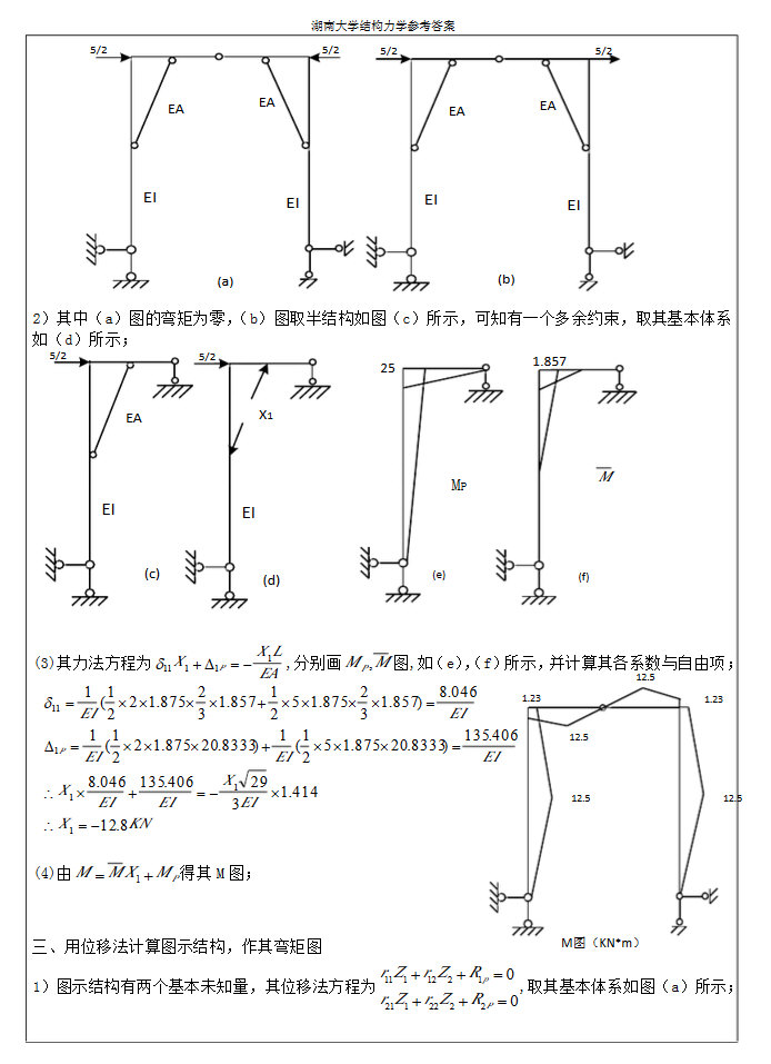 湖南大学(2013-2014)结构力学考研真题参考答案(3)