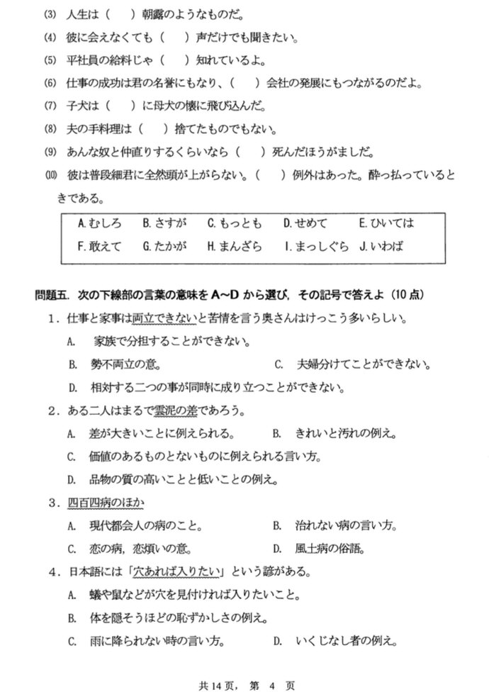 2006年四川外语学院基础日语考研试题(4)