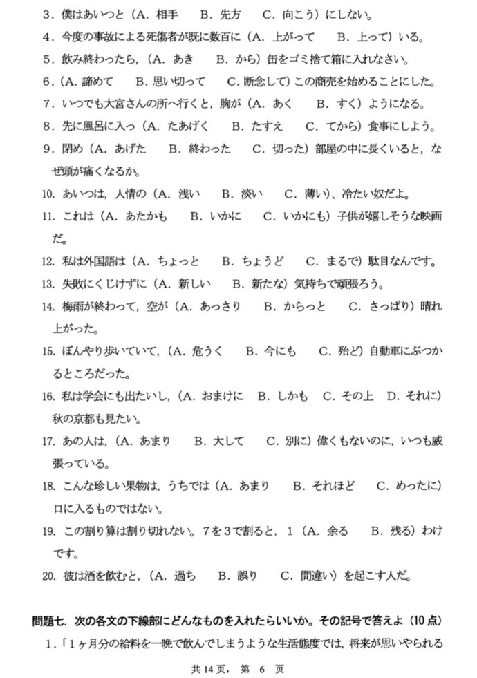 2006年四川外语学院基础日语考研试题(6)